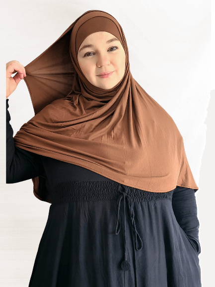 Indulge in warmth, softness, and timeless elegance with the Golden Garden Gift Set. This 3-piece collection includes two instant jersey shawls—Golden Beige and Toffee Glow—available in single loop with separate undercap or double loop with attached undercap, plus the floral Golden Whisper Veil from my Luxe Harmony Collection.