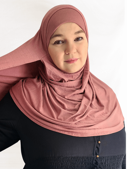 This is the double loop instant hijab with an attached matching undercap, crafted for a polished look in seconds. Both loops are sewn in to offer seamless draping and a layered silhouette without the need for pins.